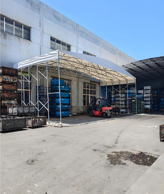 、物流仓库推拉帐篷、圆弧顶长方形、耐用不褪色、抗撕裂、¥100元/平方米、仓库电动推拉帐篷、水果摊遮阳棚